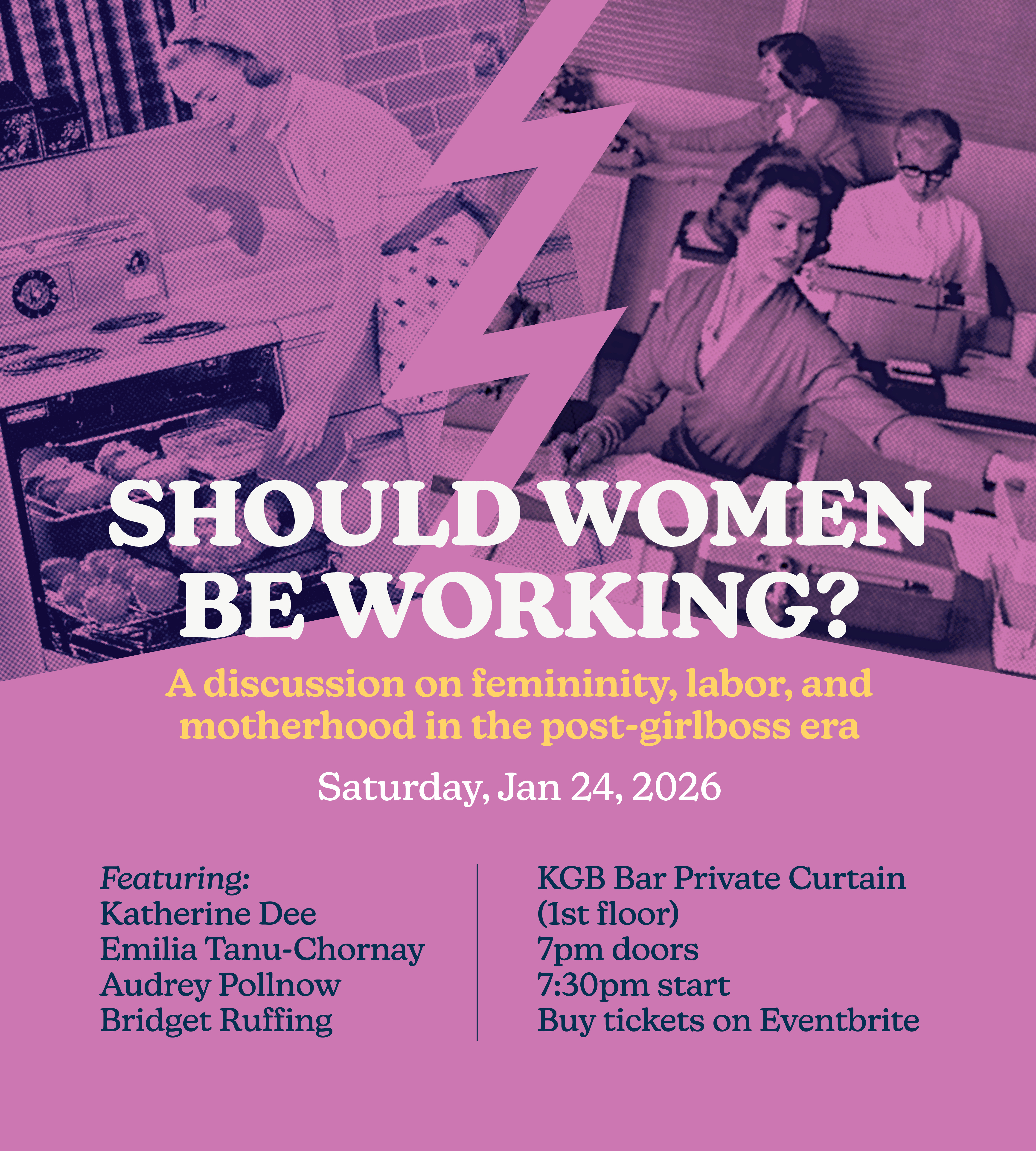 Get your tix for ‘Should Women Be Working?’ next Saturday @ KGB feat. Katherine Dee Audrey Pollnow Bridget Ruffing and Emilia Tanu Chornay. Annual/Monthly subscribers get half off and Founding members get in free! (DM for the discount codes)