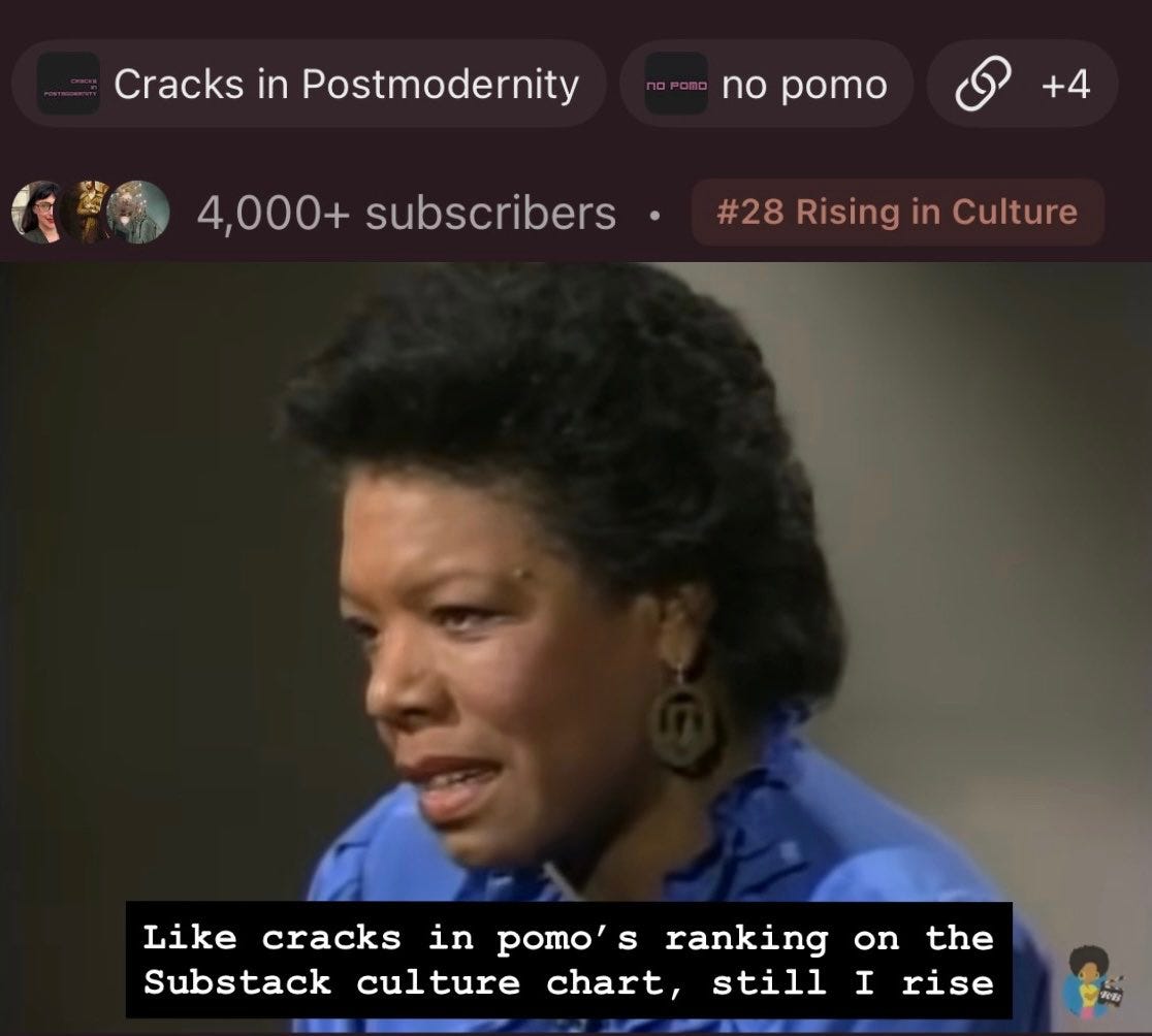 Thank you to our many new followers who helped us surpass 4k subscribers and reach a new peak on the Substack Rising Culture chart.