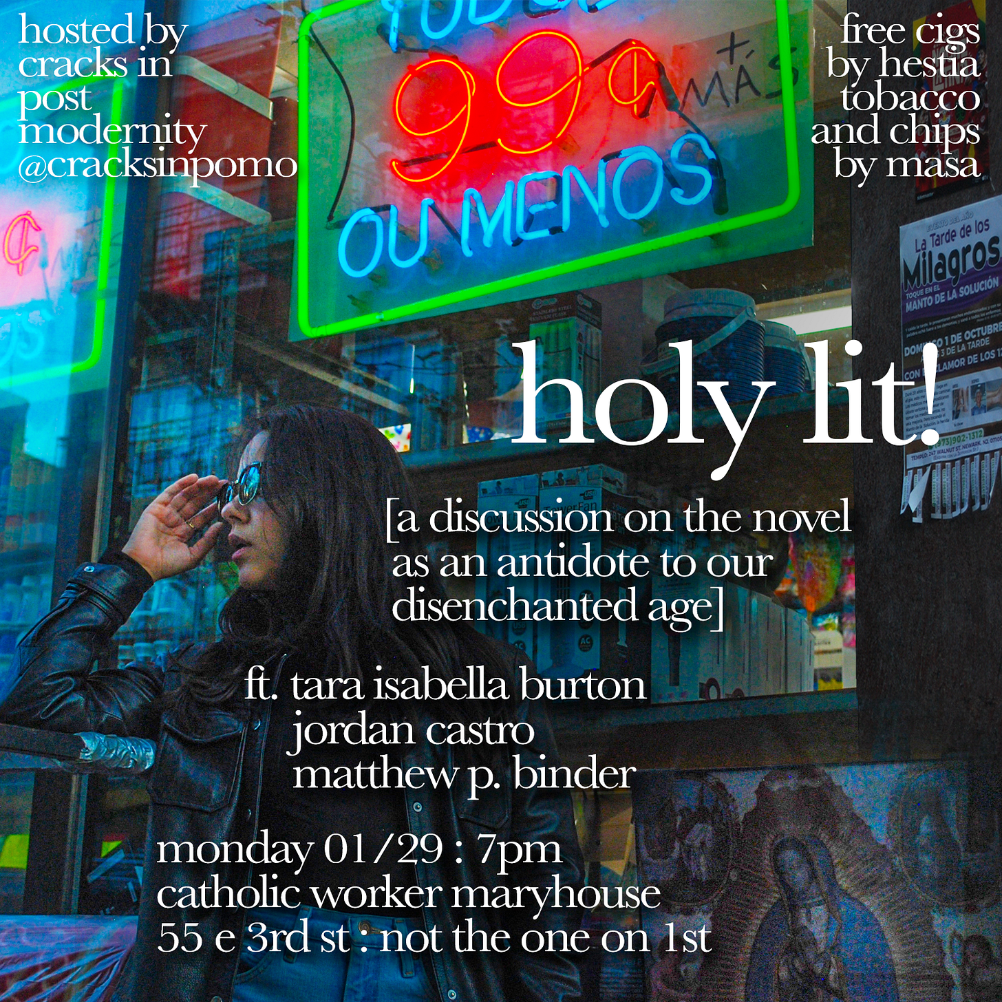 We hope you’ll join us on Monday 1/29 at Holy Lit!, a discussion on the novel as an antidote to our disenchanted age featuring Tara Isabella Burton, Jordan Castro, and Matthew P. Binder. More details here.